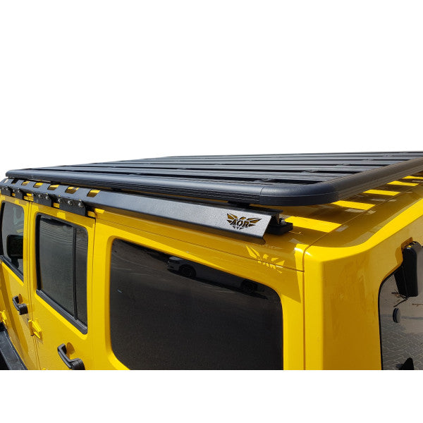 مجموعة حامل السقف AOR هي الحل لأصحاب Jeep Wrangler JK 4DR 07-17 الذين يتطلعون إلى إضافة المزيد من القدرة على الحمل إلى سيارات الدفع الرباعي الخاصة بهم. مصنوع من الألومنيوم المبثوق خفيف الوزن ومكتمل بلمسة نهائية مؤكسدة ناعمة، يتم تركيب حامل السقف المتميز هذا بسرعة وسهولة في الجزء العلوي من Jeep Wrangler JK 4DR 07-17. بمجرد التثبيت، سيكون لديك مجموعة كبيرة من الخيارات لحمل المزيد من المعدات، من ألواح الاسترداد إلى الوقود الإضافي في علب AOR Jerry. \n \n \n إنها أيضًا القاعدة المثالية لخط خيام Adventure Roof Top الخاصة بنا، مما يسمح لك بقضاء أيام بعيدًا عن الشبكة والاستمتاع بالهواء الطلق المذهل. وعندما تبحث عن الرؤية القصوى، يوفر حامل السقف منصة 360 درجة لتركيب الأضواء التي تحول الليل إلى نهار.