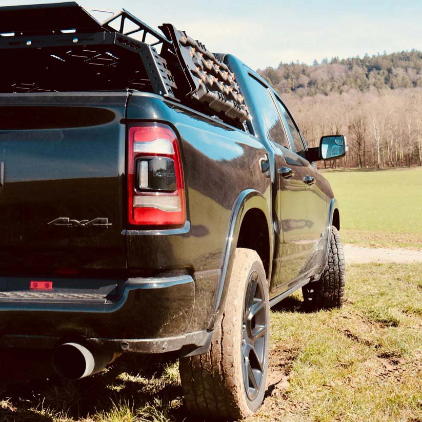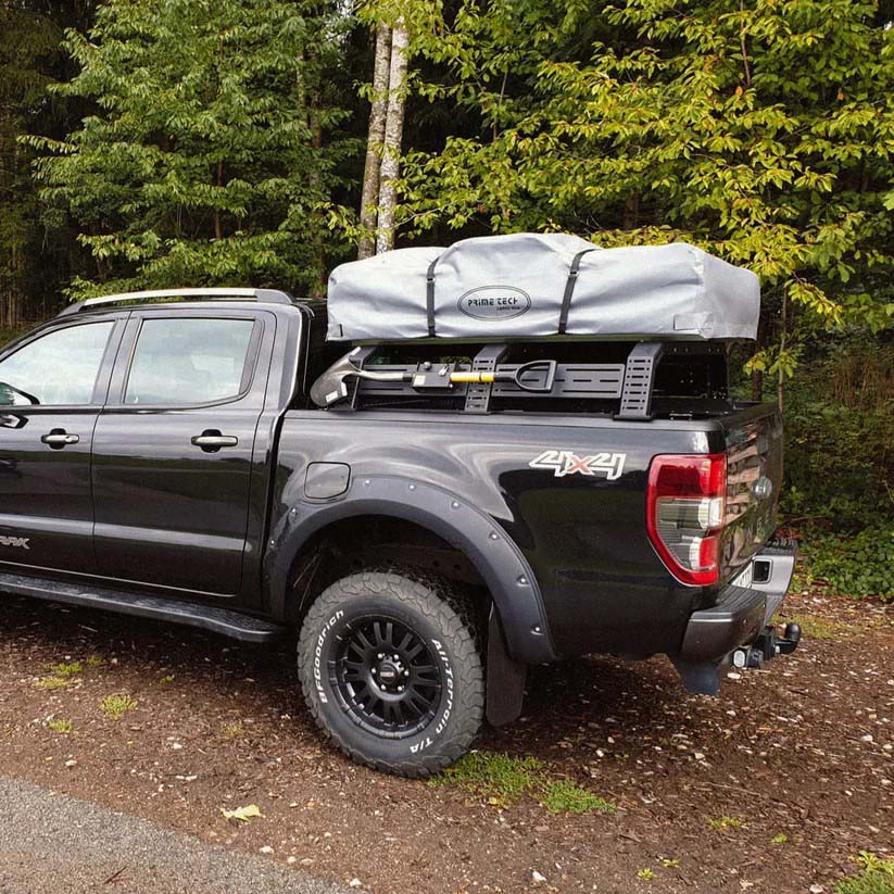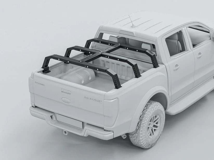 Our high quality pick-up luggage rack & roll bar "4x4 Bed Rack Mid 2" is clamped on top of the loading area of your pick-up. You keep your valuable loading space. It's ideal to transport long objects such as ladders, pipes, or wooden beams. But also reliable and stable for your roof tent. 4x4 Bed Rack Mid 2 has a payload from 800kg.