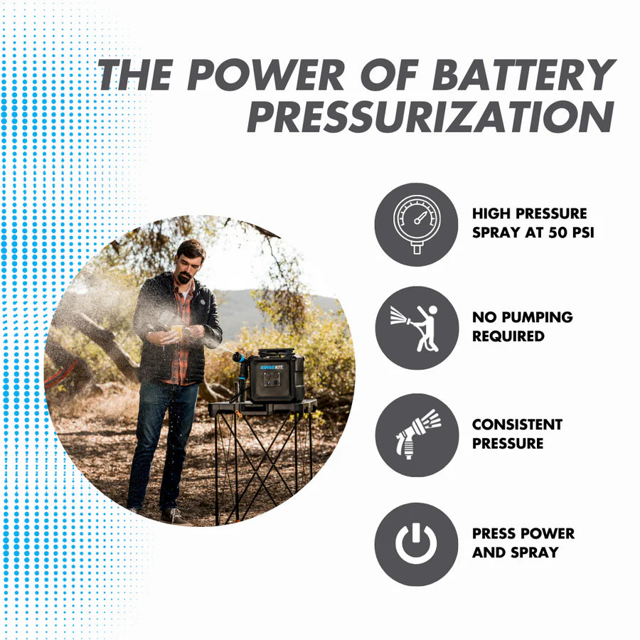 • Battery Powered Pressurization - Have access to pressurized water at the push of a button via an AGM 12v 5Ah battery