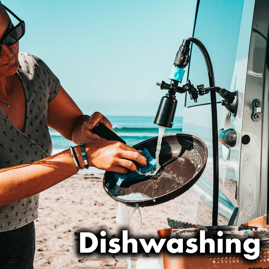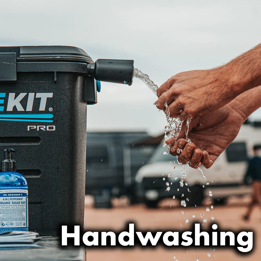 When connected to the RinseKit PRO, the Auto-Nozzle acts as a motion-detecting portable faucet that dispenses water at the wave of your hand.
