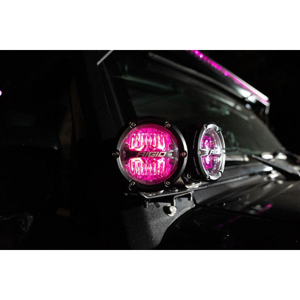 With optimized beam patterns and a RGBW backlight, RIGID’s 360-Series RGBW round lights are stylish and functional. The 360-Series RGBW round lights are protected by a high-grade aluminum alloy housing and can project up to 8,600 raw lumens making them one of the most robust and useful round lights on the market. Inside, the 360-Series RGBW round lights are feature-packed, with a black exposed circuit board, optimized forward projecting optics, and a color-changing backlight that lets you toggle between eight available backlight options with the flip of a switch: red, green, blue, light blue, purple, amber, white, or demo mode. Select from the 4 Inch, 6 Inch, or 9 Inch lights with Spot, Drive, and Diffused (4 Inch Only) beam patterns for a customized experience and look. RIGID’s 360-Series RGBW round lights seamlessly integrate into multiple applications and make it easier than ever to Own The Night.