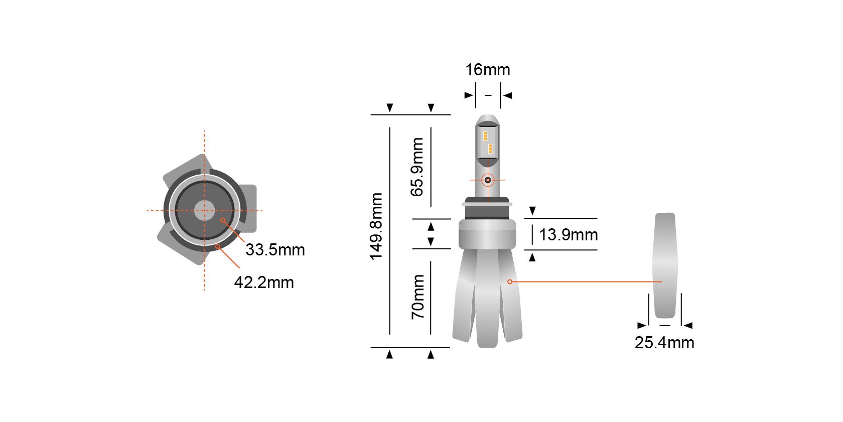 We’ve moved away from active cooling (fan kits) and adopted passive cooling. Passive cooling not only substantially increases reliability, but the flexible cooling belts of our Copper Heads offer the ability to retain the use of the factory dust caps maintaining the water & dust resistance of the headlight housing. With lower profile than that of a fan cooled kit, compatibility and ease of install is also much wider.