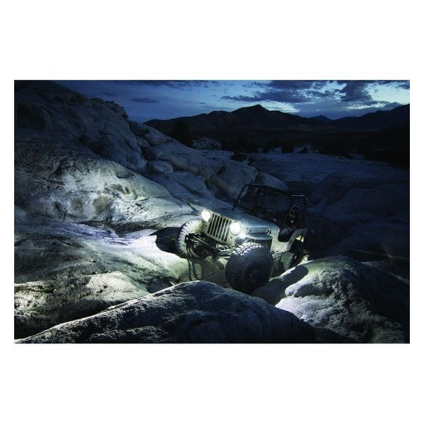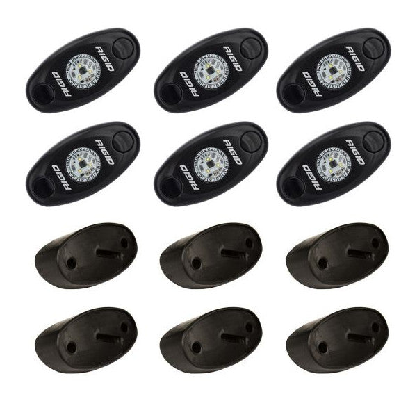 The RIGID Rock Light Kit uses the power and durability of A-Series LED lighting and adds custom 15 foot leads on each light, switch and angled mounts to light up the undercarriage of any truck, Jeep, or all-terrain vehicle. This kit will allow you to light up the trail with strategically placed lights on the vehicle. Perfect for night rock crawling, the LED lights are available in a variety of colors, including white, red, blue, or amber to aid night vision or accent vehicle colors. RIGID Rock Light Kits are available in 4-light or 6-light configurations to enhance and customize your night crawling experience. Own The Night with the original LED Rock Light Kit.