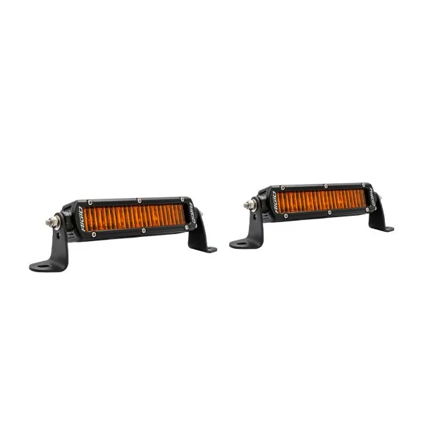 RIGID's Amber PRO Edition 6-inch SAE SR-Series is the ultimate combo of street-legal and dust-cutting. Good visibility is a must when out on the trail, overlanding, or racing! RIGID's Amber PRO Edition was developed specifically for high dust, smoke, and other low-visibility conditions. The amber lighting provides superior performance in adverse lighting conditions thanks to the unique attributes of the human eye that make it easier to process light in longer wavelengths. This reduces glare, enhances definition, and improves contrast, allowing you to see farther than traditional white lighting. The 6-inch SR-Series light bar is a sleek, low-profile light, measures less than 2 Inches tall, and features a single row of LEDs. Protected by an aluminum housing, features a blacked-out circuit board, prominent RIGID branding, and a limited lifetime warranty, the SR-Series offers superior build quality with a refined look. RIGID's Amber PRO Edition makes it easier than ever to Own The Night.