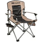 The ARB Camping & Air Locker Chair is designed for comfort and convenience, rated to support up to 150kg. It features a padded seat and backrest, a side table with a drink holder, and multiple pockets for storing essentials like keys and magazines. Built from durable nylon oxford weave material, the chair comes with a matching carry bag for easy storage and transport, making it the perfect companion for camping trips.