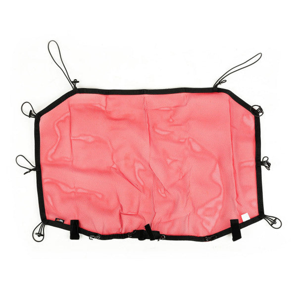 This Rugged Ridge Eclipse Sun Shade in red mesh gives your Jeep a nice little color accent. The Rugged Ridge Eclipse Sunshade gives the open air feeling you want, while providing added protection from harsh sunlight. Featuring reinforced mesh construction, the half sun shade installs between the front portion of a JK sport bar and windshield to protect either front or rear passengers separately. By using the mesh material with built-in elastic straps, this sunshade was designed from the start to eliminate the need for a header channel as with other similar products. An all-in-one package, this sunshade is simple to install and does not require any modifications. By retaining access to the Jeep top clamps, drivers can keep the shade in place and preserve function of the factory hardtop.