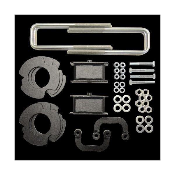 This Truxxx lift leveling kit allows for 33" tall tires to be installed when used on a stock offset style wheel. All of our kits are a direct bolt in, simple and easy to install and require no modifications to your vehicle. These kits retain the stock ride quality of your truck. Each kit contains two front strut lower ‘c’ brackets, 6 upper strut spacers, plated u-bolts, 2 rear blocks, all hardware needed, detailed instructions and complete alignment specs. Recommended installation time is approx 3 hours + alignment and a 33” tall tire are commonly used on a stock offset style wheel.