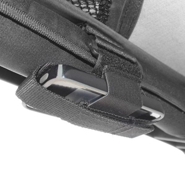 \nA few hours worth of rock-crawling or even a few miles of bad road can have the contents of your Jeep doing the Boogaloo off to oddball places like under the seat or concealed under the luggage. That's not cool when you need a flashlight or your cell phone in a hurry. These nylon holders will keep all that stuff attached in a convenient but out-of-the-way place by Velcroing them to the roll bar.