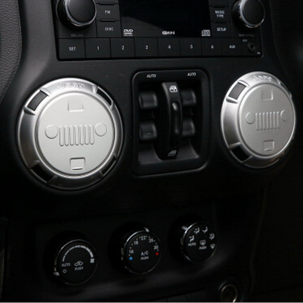 The Jeep Wrangler JK 07-17 Air Con Vent Grille Style Cover is an accessory designed to give your vehicle's air conditioning vents a rugged, grille-inspired look. Made from high-quality materials, this cover adds a distinctive style while protecting the vents from dust and debris. It is easy to install and fits securely over the existing vents, enhancing the interior appearance of your Jeep Wrangler with a tough, off-road aesthetic.