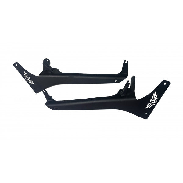 The Jeep Wrangler JL 18-21 50-52" Roof LED Light Bar Brackets are specifically designed for mounting a 50-52 inch LED light bar on the roof of a Jeep Wrangler JL model from the years 2018 to 2021. These brackets provide a secure and stable mounting solution, ensuring optimal light placement and performance. They are typically made from durable materials like steel and often feature a powder-coated finish for corrosion resistance and a sleek appearance, complementing the rugged look of the vehicle.