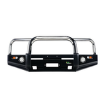 The 4×4 World Protector Winch Bull Bar is an our top of the line bar. Featuring stainless steel loops, the bar is sure to turn a few heads and really add to your vehicles image. Featuring winch and airbag compatibility, integrated fog lights and aerial mount, this bar has everything to see you out to the tracks and around town.